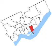 Its provincial counterpart in elections to the Ontario Legislative Assembly was the riding of Riverdale which covered much of the same area.