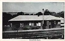 The Brookfield station first opened in 1840, and was built by Housatonic Railroad. The Brookfield station was located in the Iron works district of Brookfield, today known as "Four Corners" or the "Town Center District". The station was designed to be used for both passenger and freight service. On September 24, 1868, a second station had opened on Stony Hill Road that was known as "Brookfield Junction". Passenger service was operated by Penn Central until April 30, 1971.[1]