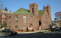 Brookville Presbyterian Church and Manse is a historic Presbyterian church located at White and Main Streets in Brookville, Jefferson County, Pennsylvania, United States. The church was built in 1904–1905, and is a Richardsonian Romanesque-style building built of Hummelstown brownstone.[2] It features two entrances, each set in a loggia, and a square bell tower. The interior is designed in the Akron plan. The manse was built in 1890, and is a brick Second Empire-style dwelling. It features two, 2-story bay windows; a mansard roof; and an open porch.[3]