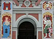 The Brotherhood of Blackheads was divided into local autonomous organizations that owned the so-called Blackhead Houses in more than 20 towns in Estonia and Latvia, including Tallinn, Riga, Tartu, and Pärnu. In the 17th century, a brotherhood of Blackheads was also established in Wismar, Germany. The House of the Brotherhood of Blackheads in Tallinn is the only one that has survived intact into the 21st century. The Brotherhood was renting the property at 24-26 Pikk Street, Tallinn, already in 1406. In 1531, the Blackheads acquired the building from the town councilor Johann Viant and his wife Kerstine Bretholt (Breitholtz) and rebuilt it in the Renaissance style of the period. It remained in the possession of the Blackheads until the summer of 1940 when the Soviet Union occupied and annexed Estonia.[2] An equally magnificent House of Blackheads in Riga that had been sold to the Blackheads in 1713 was destroyed on 28 June 1941 when the German army conquered Riga, and the burnt-out walls were demolished by the Soviets in 1948. The Blackheads' House in Riga was reconstructed between 1995 and 2000.[3]