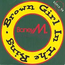 Arguably the most popular version of the song, Boney M.'s recording was originally the B-side to the group's number-one hit single "Rivers of Babylon" (1978). In July 1978, following ten weeks in UK Top Ten, five of them at number one, "Rivers of Babylon" slipped to number 18 and then to 20, when radio stations flipped the single. Airplay for "Brown Girl in the Ring" resulted in a happy chart reversal, with the single re-entering the Top Ten, where it spent an additional nine weeks, peaking at number two in September.[2] Liz Mitchell had previously recorded the song in 1975 with the group Malcolm's Locks, as the B-side of their single "Caribbean Rock". Mitchell's ex-boyfriend Malcolm Magaron was the group's lead singer. Arranger Peter Herbolzheimer accused Frank Farian of stealing his arrangement for the song, for which Farian claimed credit on the single.[3] The court case ran for more than 20 years in Germany.