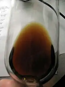 Like most fruit, grapes vary in the number of phenolic compounds they have. This characteristic is used as a parameter in judging the quality of the wine.[4] The general process of winemaking is initiated by the enzymatic oxidation of phenolic compounds by polyphenol oxidases.[4] Contact between the phenolic compounds in the vacuole of the grape cell and the polyphenol oxidase enzyme (located in the cytoplasm) triggers the oxidation of the grape. Thus, the initial browning of grapes occurs as a result of "compartmentalization modification" in the cells of the grape.[4]