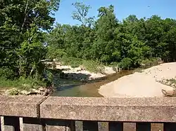![]() Brush Creek looking north from Missouri route 14 bridge. Confluence of Little Brush Creek (right) and Brush Creek (left) | |