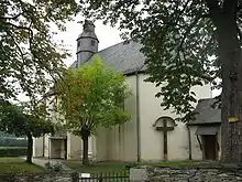 - Catholic Church of the Assumption (Katholische Kirche Mariä Himmelfahrt), Hauptstraße 13 – aisleless church, marked 1735/1736, with parts of walls from the foregoing mediaeval building, conversion possibly in 1783; old graveyard, two grave crosses, marked 1771 and 1717; wooden cross, marked 1814; whole complex of buildings
