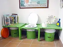 - ↑ "Make a twin bucket toilet". PHLUSH (Public Hygiene Lets Us Stay Human). 11 October 2011. Archived from the original on 26 September 2015. Retrieved 18 October 2015.