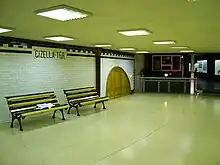 The museum’s entrance hall displays the inscription Gizella tér, executed in Zsolnay glazed tile, which comes from the original city centre terminus (now Vörösmarty tér station).[2][3]