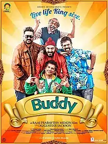 Buddy is a 2013 Indian Malayalam-language drama film written and directed by Raaj Prabavthy Menon. The film has been produced by Augustin Jackson and it features an ensemble cast of Anoop Menon, Srikanth, Bhumika Chawla, Balachandra Menon, Asha Sarath, Lal and Honey Rose.[2][3][4] Balachandra Menon made a comeback after a long time through this film. The film did fairly well at the box office.