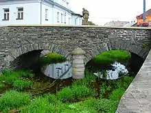 Notable is a Baroque stone bridge with a statue of Saint John of Nepomuk. Next to the bridge is a water mill, which houses the Slate Museum.[6]