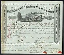 Share of the Buffalo, Bradford and Pittsburgh Rail Road Company, issued 31 March 1860
