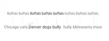 - Buffalo buffalo (animals called "buffalo" from the city of Buffalo) [that] Buffalo buffalo buffalo (that the same kind of animals from the city bully) buffalo Buffalo buffalo (bully these animals from that city).