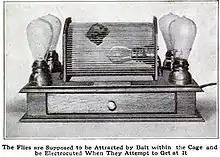 Separately, William Brodbeck Herms (1876–1949), a professor of parasitology at the University of California, had been working on large commercial insect traps for over 20 years for the protection of California's important fruit industry. In 1934 he introduced the electronic insect killer that became the model for all future bug zappers.[14]