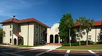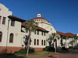 Buildings on the Main Campus are modeled in Spanish Mission architecture using terra stucco construction and terra cotta roofs, and are surrounded by picturesque landscaping featuring palms, pines, azaleas, camelias and a mix of other beautiful flowering plants. It features an attractive pedestrian mall of inlaid brick and well-designed seating areas.[2] The Rea and Lillian Steele North Campus is home to the Harley Langdale Jr. School of Business and Air Force ROTC Detachment 172, and is less than a mile north of VSU's main campus. The buildings follow a red brick modified form of Georgian architecture.[3]