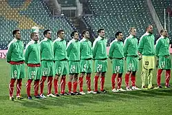 Bulgaria's traditional colours are white, green and red, taken from the colours of the country's flag. This tricolour is reflected through the use of white shirts, green shorts, and red socks. The team's away kits have usually been red.
