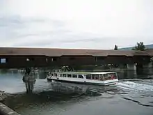 ![]() Büren with the historic wooden bridge spanning the Aare | |