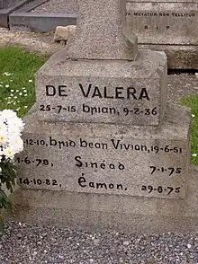 - Sinéad de Valera – wife of Éamon de Valera, buried in the same plot