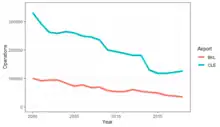 The airport's total operations have decreased over the past two decades from 100,321 in 2000 to 40,185 in 2019. Between 2018 and 2019, operations at Burke increased by 16.5% from the 34,497 operations in 2018. Additionally, the airport is frequently used by professional sports team charter flights due to its proximity to FirstEnergy Stadium, Progressive Field, and Rocket Mortgage FieldHouse. The airport also serves as the operational hub for Cleveland Clinic's fleet of air ambulances.