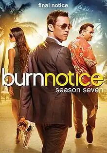 The seventh and final season of the American television spy drama Burn Notice aired from June 6, 2013 to September 12, 2013, on the cable television channel USA Network. The 13-episode season was ordered by USA Network on November 7, 2012.[1] In May 2013, the network announced that this season will be the show's last.[2] Production on the series wrapped on July 31, 2013.