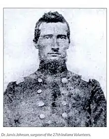 The most detailed account is in a sworn (notarized) statement from Dr. Jarvis J. Johnson (1825–1899), of Martinsville, Indiana,[74] who was with General Banks when Union troops entered Winchester, and was the first doctor to enter the building.[72]