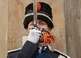 The historic busby is still worn by ceremonial detachments of the Dutch Hussars and Royal Gendarmerie (Koninklijke Marchaussee) in full dress uniform.[13]