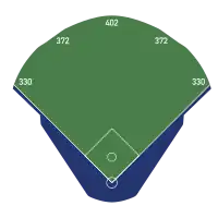 | Field size | Left Field – 330 ft (101 m) Left-Center – 372 ft (113 m) Center Field – 402 ft (123 m) Right-Center – 372 ft (113 m) Right Field – 330 ft (101 m) Backstop – 64 ft (20 m) Original Dimensions (1966) Left Field – 330 ft (101 m) Left-Center – 386 ft (118 m) Center Field – 414 ft (126 m) Right-Center – 386 ft (118 m) Right Field – 330 ft (101 m) Backstop – 64 ft (20 m) ![]() |