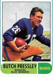 William Neel Pressley (born March 22, 1941), known professionally as Butch Pressley, is a former Canadian football player who played for the Edmonton Eskimos and Winnipeg Blue Bombers. He played college football at the Texas A&I University–Kingsville[1] and was inducted into the Javelina Hall of Fame in 1977.[2] Pressley was the former president and co-owner of Timco Services.