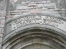 The first building on the Fairview campus was Arthur Jordan Memorial Hall, designed by Robert Frost Daggett and Thomas Hibben. The structure's Collegiate Gothic style of architecture, also used in the original William Tinsley-designed 13th Street and College Avenue building, set the tone for subsequent buildings erected on the campus over the next three decades.[4][5] Also, in 1928, the Butler Fieldhouse (later renamed Hinkle Fieldhouse) was completed after being designed by architect Fermor Spencer Cannon. The building remained the largest indoor sports facility in the state until the mid-1960s. The Religion Building and Sweeney Chapel were completed in 1942. These structures, designed by Burns and James, were remodeled into Robertson Hall in 1966.[4][5] The building now serves as the university's alumni and admissions offices.