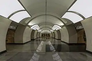Butyrskaya (Russian: Бутырская) is a Moscow Metro station of Lyublinsko-Dmitrovskaya Line. It is located between Maryina Roshcha and Fonvizinskaya, at the intersection of Rustaveli Street and Ogorodny Proyezd, close to Ostankino railway station. It has one island platform.[1] The name of the station derives from Butyrsky District and is thus related to the Butyrka prison and Butyrskaya Street.