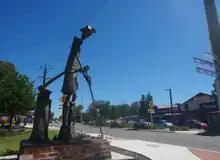 Byford contains nine sculptures developed by Zen Luks which portray historical and culutral aspects of Byford. Each sculpture is located on the 7 kilometres (4.3 mi) long Byford Sculpture trail along the South Western highway. The four northernmosts are at the northern enterance after the intersection between Thomas road and South Western highway. The first is the Byford sign, followed by sculptures of a girl with a cow to represent the early diary industry, a tractor which represents Byford's agricultural industry in the 1930s and a trotter driver to represent the trotting complex that opened in 1969. Subsequent sculptures represent Charlie Knox, a traffic inspector in Byford in the 1940s and 1950s; Sister Wossley who nursed children in the 1940s;[38] a returned serviceman; Rivorse, who ran a dead heat with Eurythmic in the 1919 Perth cup;[39] two boxing kangeroos; a brickworker who worked at the brickworks in the 1920s; a cockatoo; and a kangeroo at the southern enterance.[38]