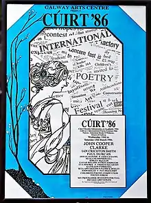 The Cúirt Filíochta Idirnáisiúnta na Gaillimhe (Galway's International Poetry Festival) of 1986 was held on 12–15 March. It featured John Cooper Clarke, Ian Crichton Smith, Paul Durcan, Douglas Dunn, Gerald Dawe, Nuala Ní Dhomhnaill, Sorley MacLean, Eavan Boland, founder Fred Johnston, Eva Bourke, Thomas McCarthy, Kathleen O'Driscoll, Rita Ann Higgins, Patrick Deeley, Pat Ingoldsby, and John Hogan.