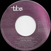 "C'est pour toi" (meaning "It's for You") is the first single from Celine Dion's album C'est pour toi. It was released in September 1985 in Quebec, Canada.[1] On 21 September 1985 the song entered the Quebec Singles Chart and reached number 3, spending twenty weeks on the chart. It included as B-side another album track called "Pour vous". A music video was made for the C'est pour toi TV special in 1985. "C'est pour toi" was featured also on Dion's later compilations: Les chansons en or (1986) and The Best Of (1988).