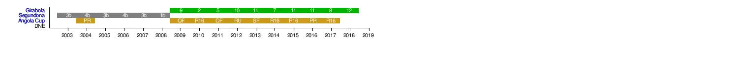 C.R. Caála's season-by-season performance since 2011: