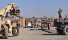 Soldiers of the 18th CSSB working in the materiel distribution yard moving the resources that have been processed in the yard.