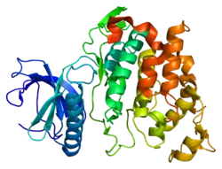 - ↑ Hanes J, von der Kammer H, Klaudiny J, Scheit KH (Jan 1995). "Characterization by cDNA cloning of two new human protein kinases. Evidence by sequence comparison of a new family of mammalian protein kinases". J Mol Biol. 244 (5): 665–72. doi:10.1006/jmbi.1994.1763. PMID 7990150.