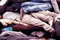 Early December, COMBO collaborated with other street artists and realized a pop-up installation[7] place de la Bourse in the 2nd arrondissement, minutes away from AFP's headquarters, to pay a tribute to the 162 homeless persons who died in the street over the six previous months.