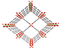 DUT-5 (DUT ⇒ Dresden University of Technology) is a material in the class of metal-organic frameworks (MOFs). Metal-organic frameworks are crystalline materials, in which metals are linked by ligands (linker molecules) to form repeating three-dimensional structures known as coordination entities. The DUT-5 framework is an expanded version of the MIL-53 structure and consists of Al3+ metal centers and biphenyl-4,4'-dicarboxylate (BPDC) linker molecules.[1][2] It consists of inorganic [M-OH] chains, which are connected by the biphenyl-4,4'-dicarboxylate linkers to four neighboring inorganic chains. The resulting structure contains diamond-shaped micropores extending in one dimension.