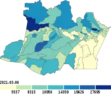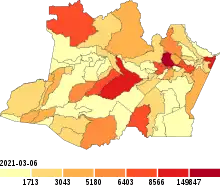 ![]() Municipalities in the state of Amazonas with case numbers per 100,000 inhabitants | |