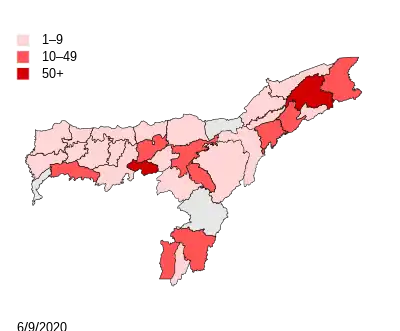 - ↑ "COVID-19 cases in Assam rise to 2,681". Outlook. 8 June 2020.