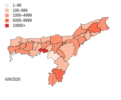- ↑ "COVID-19 death toll in Assam rises to 9, tally climbs to 4,904". Business Insider. Retrieved 19 June 2020.
