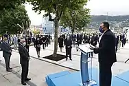 On May 18, the Spanish government announced that an agreement had been reached with the autonomous communities to make the use of face masks compulsory in closed places and on the street if safety distance could not be maintained. Until that day, it was only compulsory to wear one on public transport.[65] That same day, protests against central government's management of the coronavirus crisis took place in the main Asturian cities. A hundred citizens gathered in Gijón, a demonstration attended by the president of Vox in Asturias, Rodolfo Espina and the deputy on the General Junta, Sara Álvarez Rouco. There were also concentrations in Oviedo and in Avilés.[66]