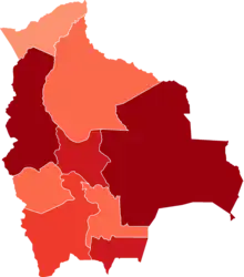 - ↑ "BOLIVIA: POBLACIÓN ESTIMADA Y PROYECTADA POR DEPARTAMENTO, SEGÚN AÑOS CALENDARIO, 2000-2025". Instituto Nacional de Estadística (in Spanish). Retrieved 7 July 2020.