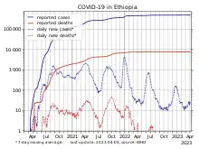 - ↑ "Ethiopia reported only 10 new coronavirus cases on Wednesday". Borkena. 31 August 2022. Retrieved 13 September 2022.