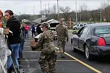 ![]() Drive-through testing site at the Iowa Events Center in Des Moines | |