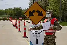 - ↑ "Iowa launches $26M coronavirus testing program, with online surveys, drive-through test sites". The Des Moines Register. April 21, 2020. Retrieved May 14, 2020.