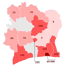 - ↑ "Covid-19 en Côte d'Ivoire: 02 décès portent le nombre de morts à 328 au 30 juillet". Alerte Info (in French). 30 July 2021. Retrieved 31 July 2021.