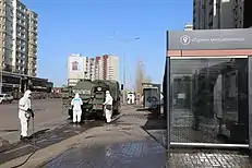On 2 February, 83 Kazakhs were evacuated from the Chinese city of Wuhan, where the COVID-19 pandemic began, of which 80 were students. After being inspected, the arrivals were placed in quarantine for 14 days in a specially designated building at the multidisciplinary hospital that was located 7 km from Astana. On 5 February, by the request of the Kazakh government, another 8 Kazakhs were evacuated from Wuhan by the assistance of Russia and Uzbekistan. 5 citizens were under medical supervision in Tashkent for two weeks, and the other three in Tyumen.[84]