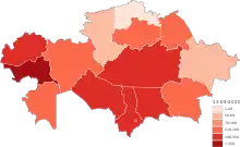 ![]() Confirmed cases of COVID-19 in administrative divisions of Kazakhstan | |