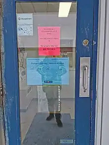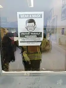 Starting March 25, air entry into Nunavut by non-residents was prohibited, with exemptions granted for critical medical workers. Residents returning to the territory are required to quarantine for 14 days at a hotel in either Edmonton, Ottawa, Winnipeg, or Yellowknife before flying back. They are monitored by security guards enforcing the quarantine, and are provided with meals.[20] These services are paid for by the government; on May 6, Premier Savikataaq backpedalled on a proposal to require these hotel stays be covered by the traveller (at a cost of $2,100 per person), as "travel at this time is a risk and we don't want to undo all the hard work we have done."[78] Exceptions were later made for those receiving medical treatment in Yellowknife.[79] The travel advisory against in-territory travel ended June 1, but other restrictions remained.[45]