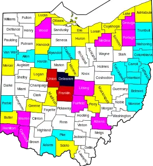 In late June and early July, some counties in Ohio experienced a sharp increase in cases.[26]