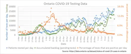 - ↑ "How Ontario turned the tide on a huge backlog of COVID-19 tests". thestar.com. April 4, 2020. Archived from the original on April 20, 2020. Retrieved April 27, 2020.