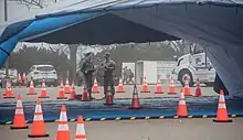 ![]() Pennsylvania Air National Guard troops set up at a Montgomery County coronavirus test site | |